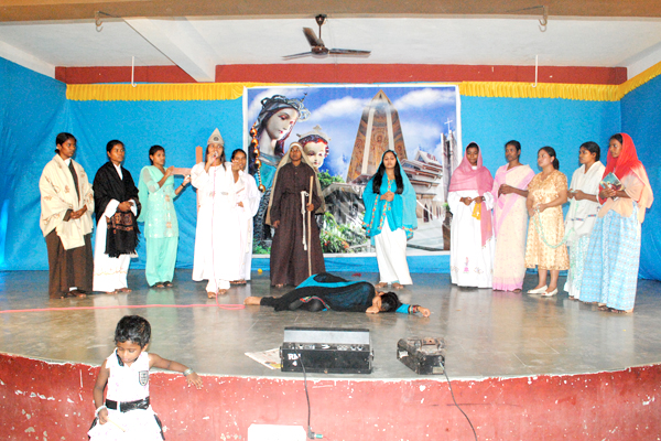 After this a Cultural Programme was put up by the parishioners. This year the cultural programme was a bit different. The Five Joyful Mysteries coloured with devotional dances in various languages were enacted beautifully. The entire programme was conceptualized and directed by Mrs. Mary D’Souza and Mrs. Curie Pereira. They have been ably supported by the area leaders of the various zones and the postulants of the Jesus & Mary Congregation.